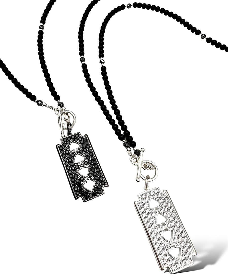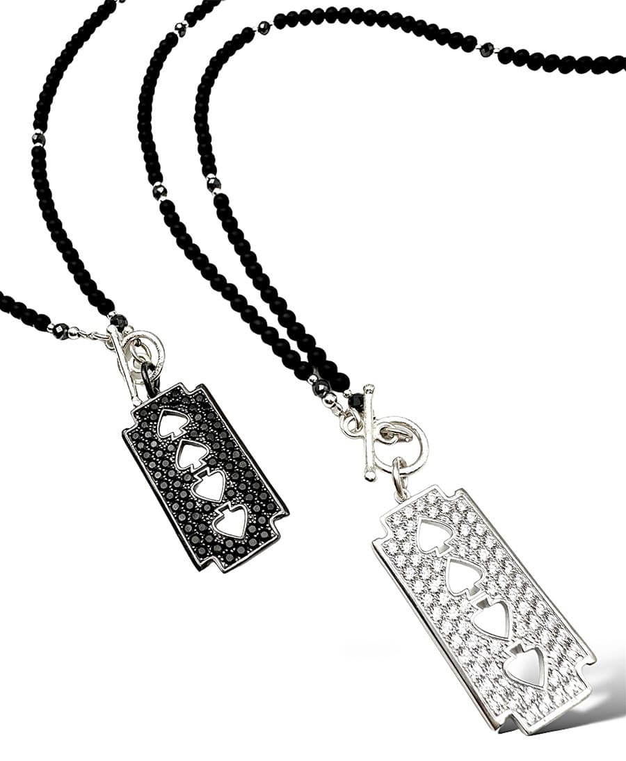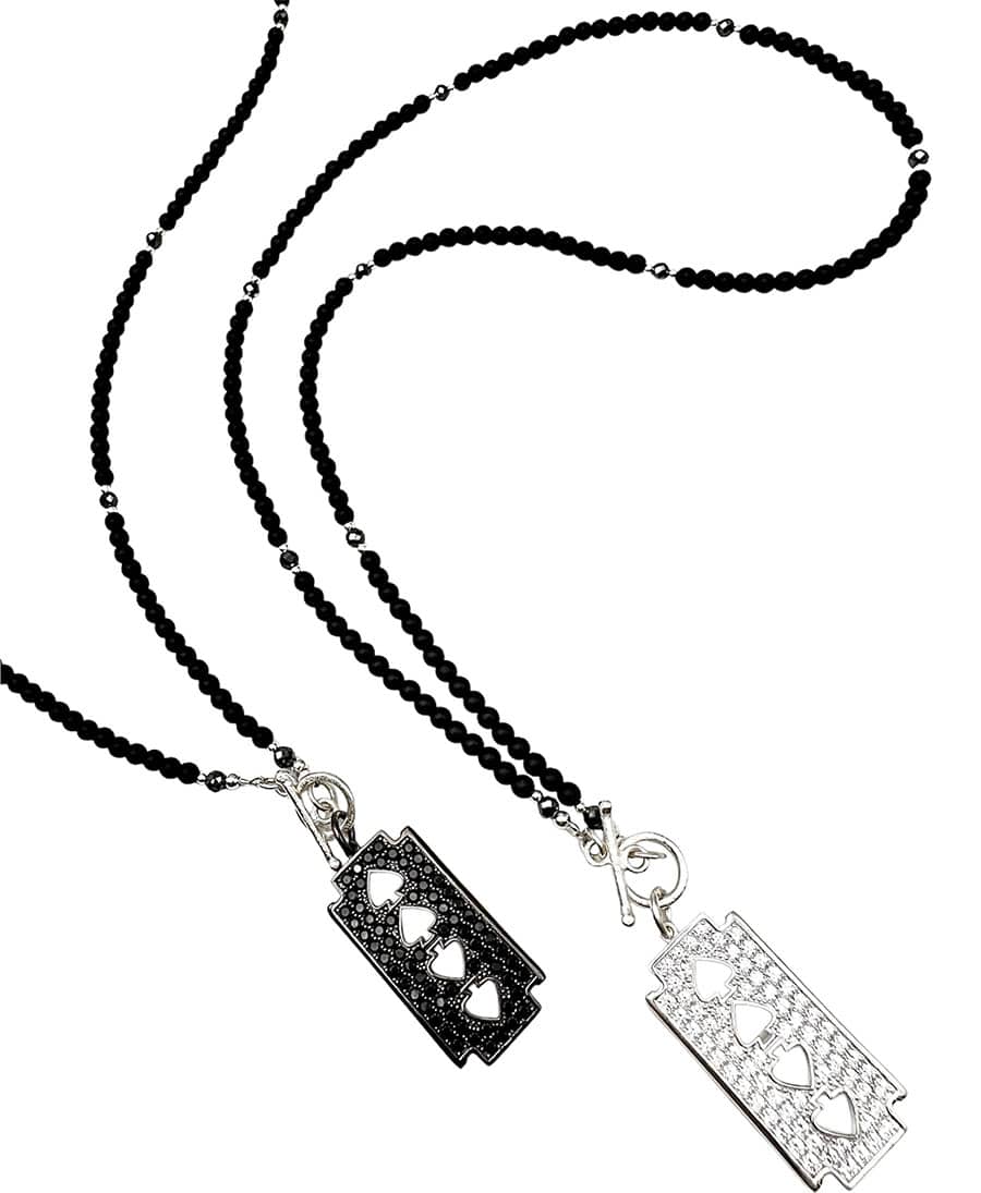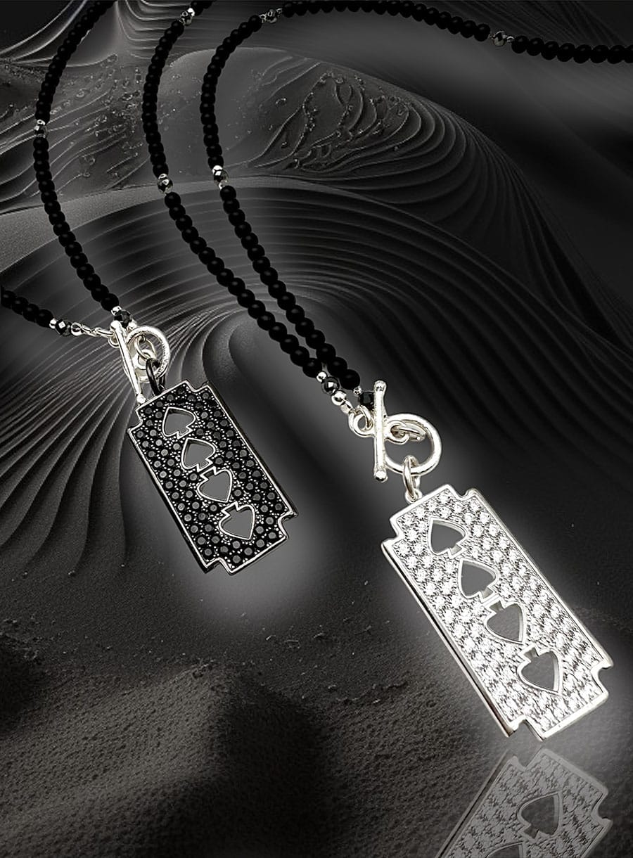 Collar unisex de lava y hematite con colgante de cuchilla de afeitar con circonitas.