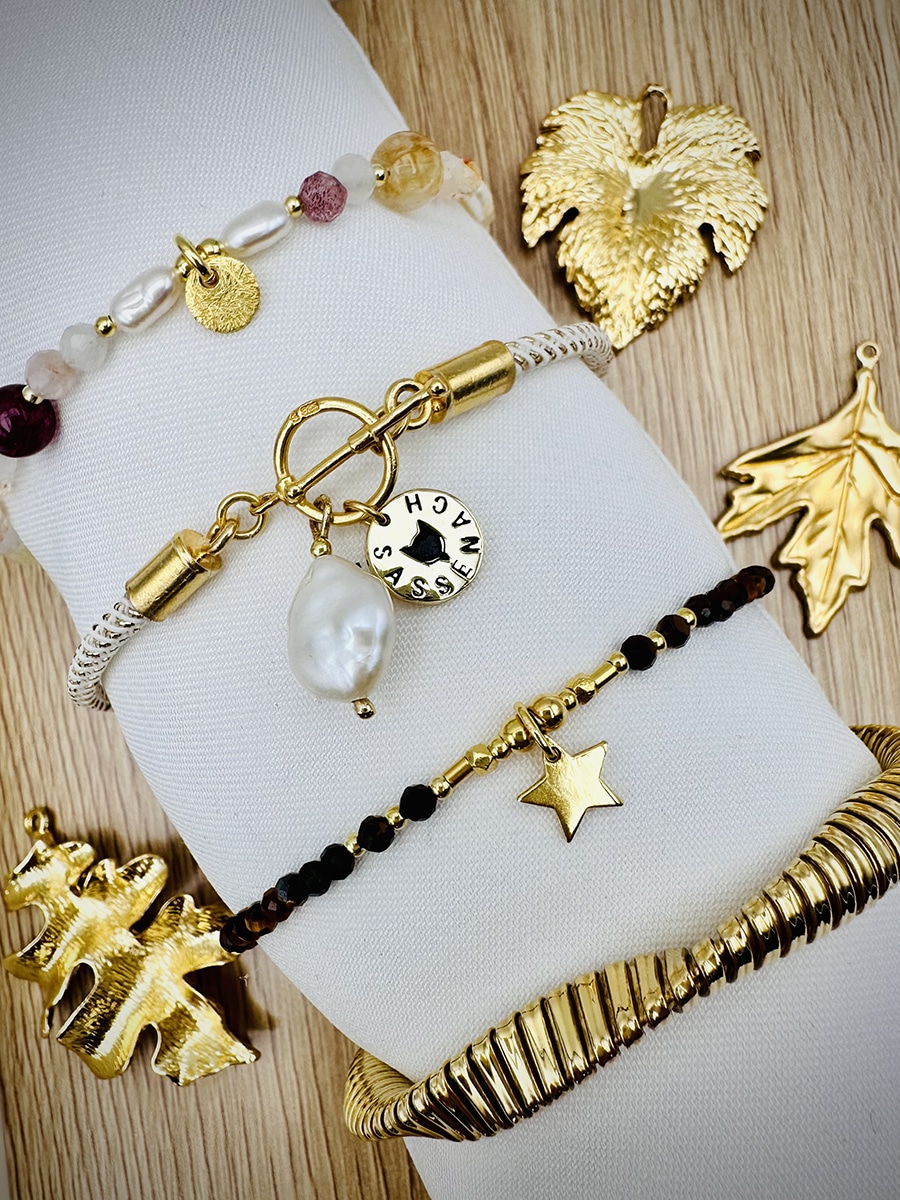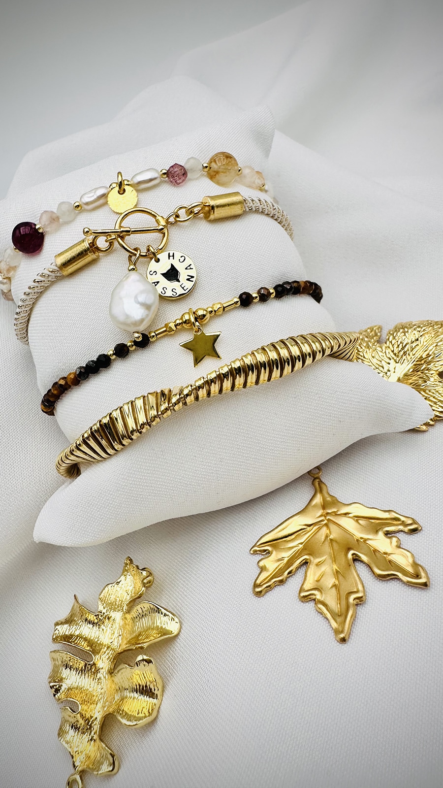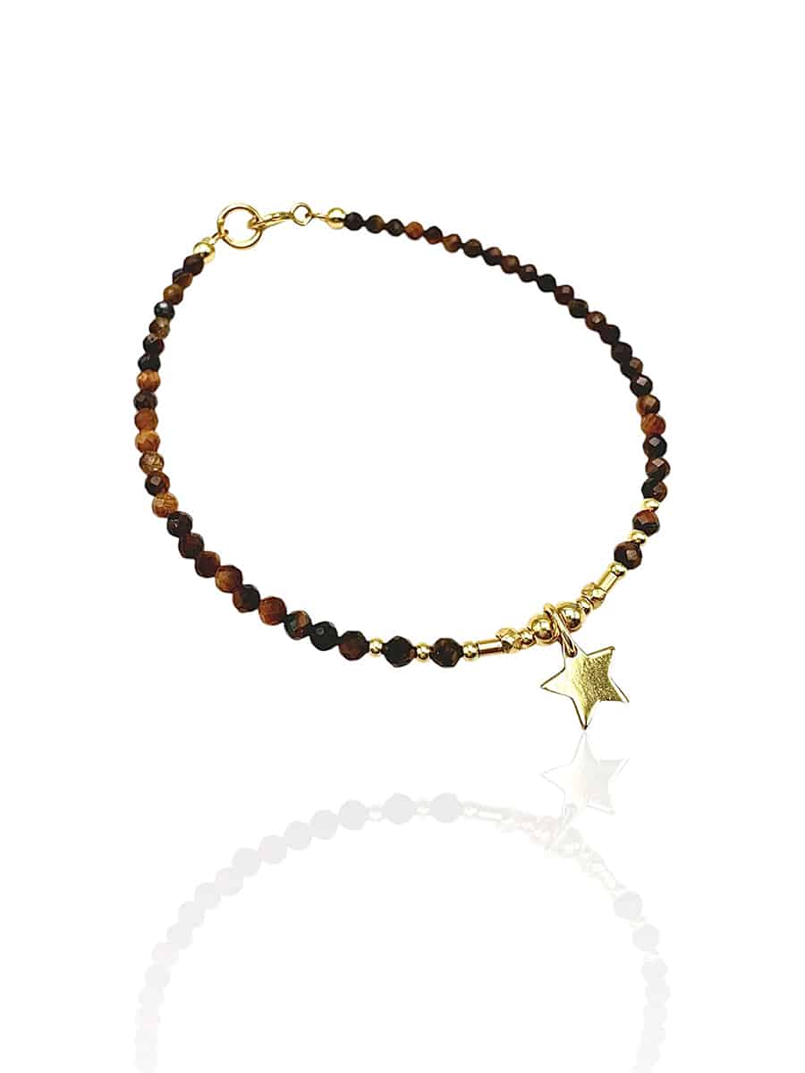 Pulsera de ojo de tigre y plata de ley con baño de oro de 18 kl.