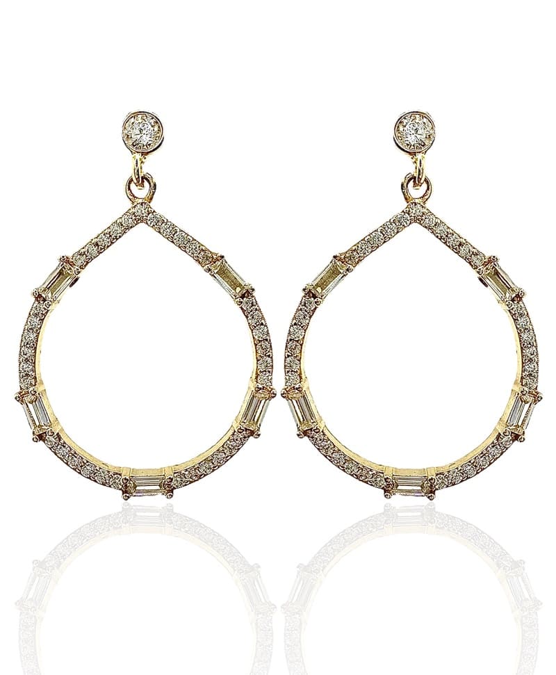Pendientes largos con circonitas en plata de ley y baño de oro de 18kl.